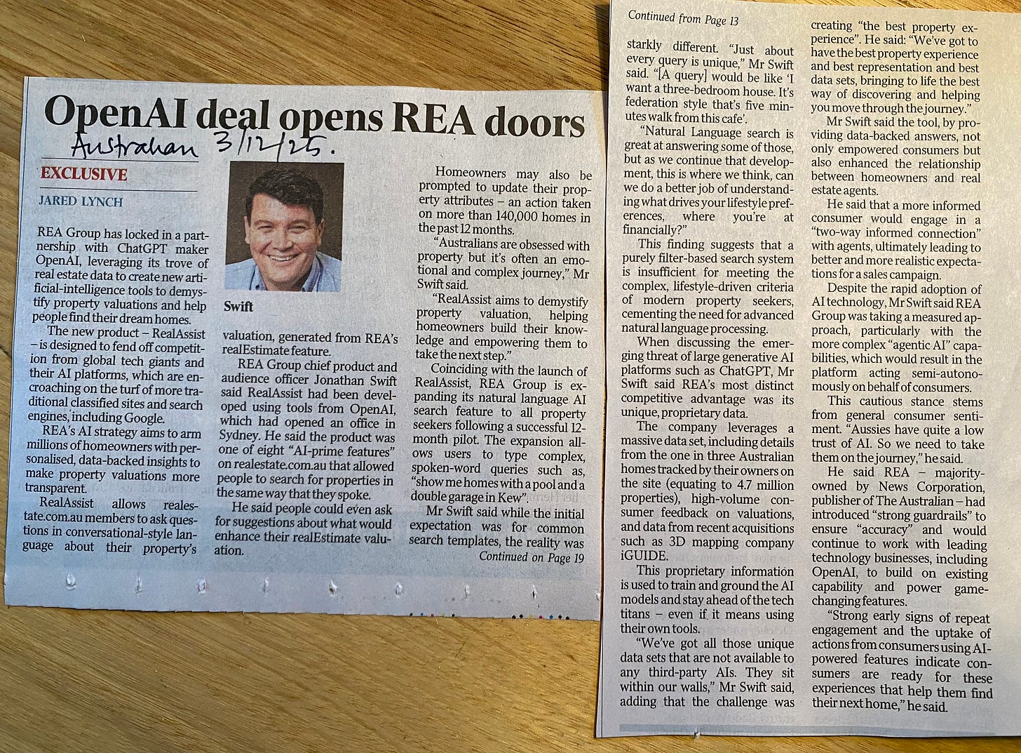 Then came The Australian’s follow-up on 3 December - REA’s new deal with OpenAI.