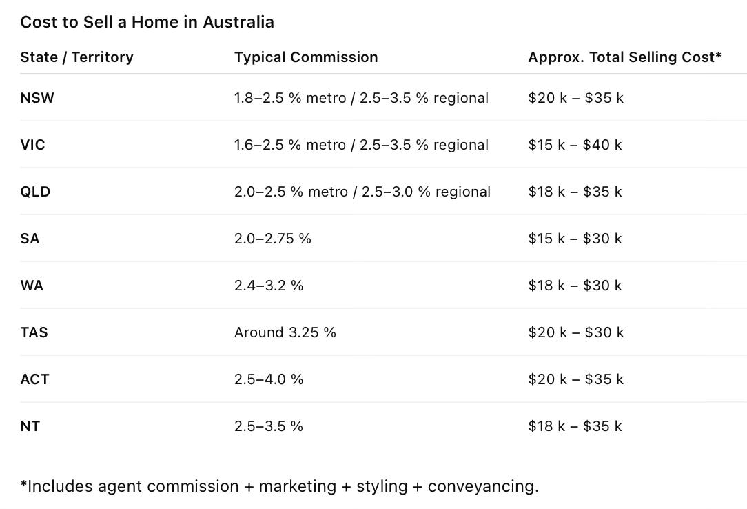 Once you include marketing, styling, conveyancing, and logistics, the total cost to sell a home in Australia ranges from $15,000 to $40,000+, depending on the property’s value and the local market.